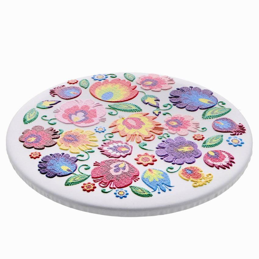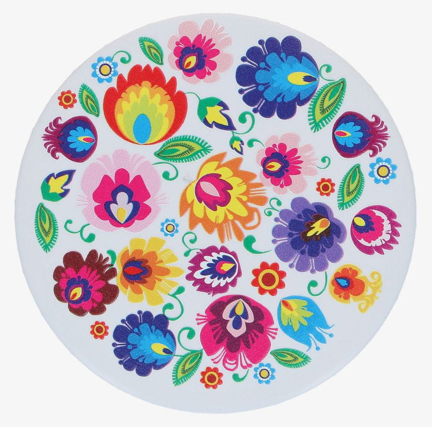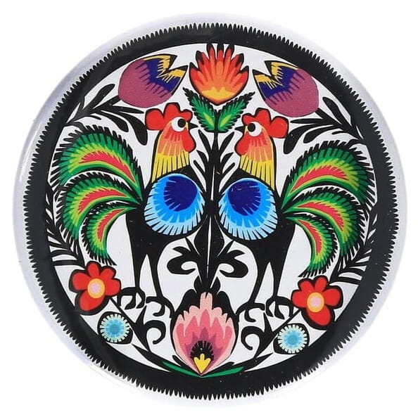 A beautiful, large, round magnet with a convex, elegant, structure giving an interesting three-dimensional effect. Extremely expressive, colorful Polish folk design will emphasize the character of your kitchen.