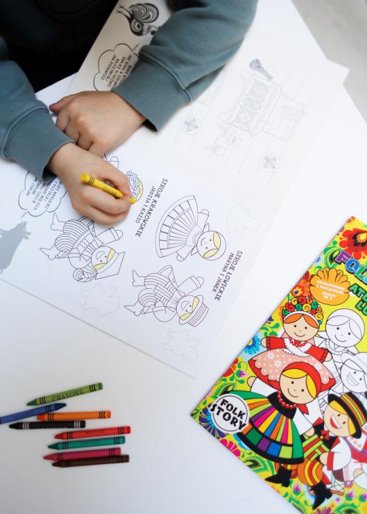 The second part of Folk colouring book with stickers - Atlas of folk costumes is a pass to discover the most charming corners of Poland, their inhabitants and regional costumes. Color the Lowicz women, get to know the colorful costumes of the Krakow people and immerse yourself in solving puzzles in the company of our Folk People.
