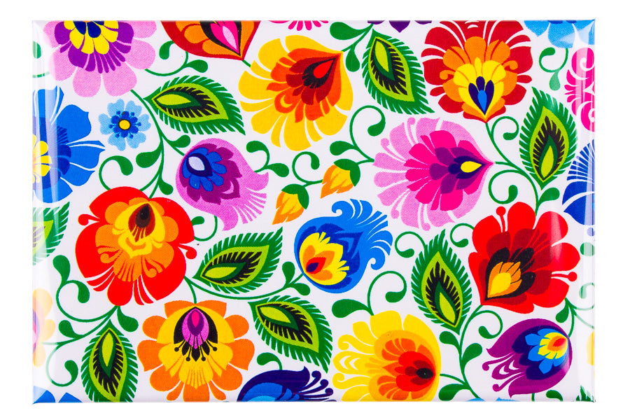 The Łowicz folk magnet is inspired by traditional Łowicz cutouts - the most recognizable symbol of Polish folklore. The basic elements of Łowicz cutouts are roosters, peacocks and floral motifs.