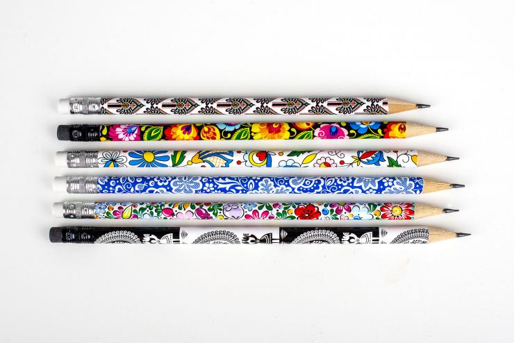 Pencils with an eraser - set of 6 - Polish folk motifs
