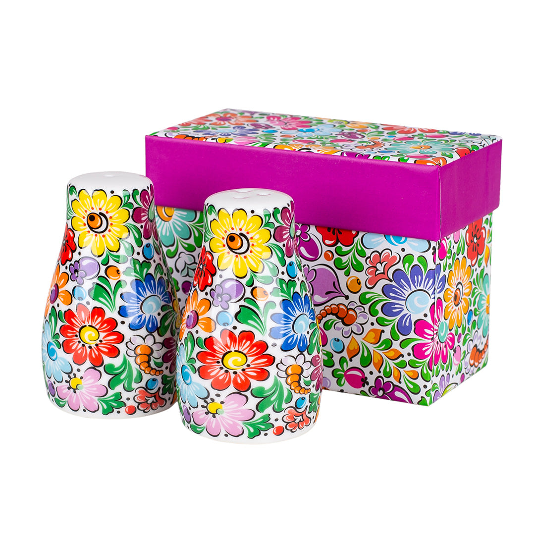The salt and pepper shaker set - white Lowicz pattern is a home accessory that no more or less perfect housewife can do without. The Lowicz pattern pepper shaker and salt shaker will add flavor to any cooked dish, regardless of whether you are a MasterChef in the kitchen or maybe you even burn water for tea ;)