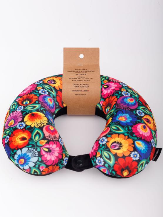 Travel Neck Pillow – Black Łowicz Pattern