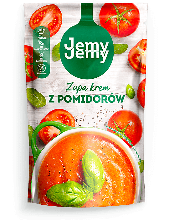 Ciesz się aromatyczną Zupą Krem z Pomidorów JemyJemy – gęstą, aksamitną i pełną naturalnych składników. Bez konserwantów i glutenu, gotowa w zaledwie 3 minuty.