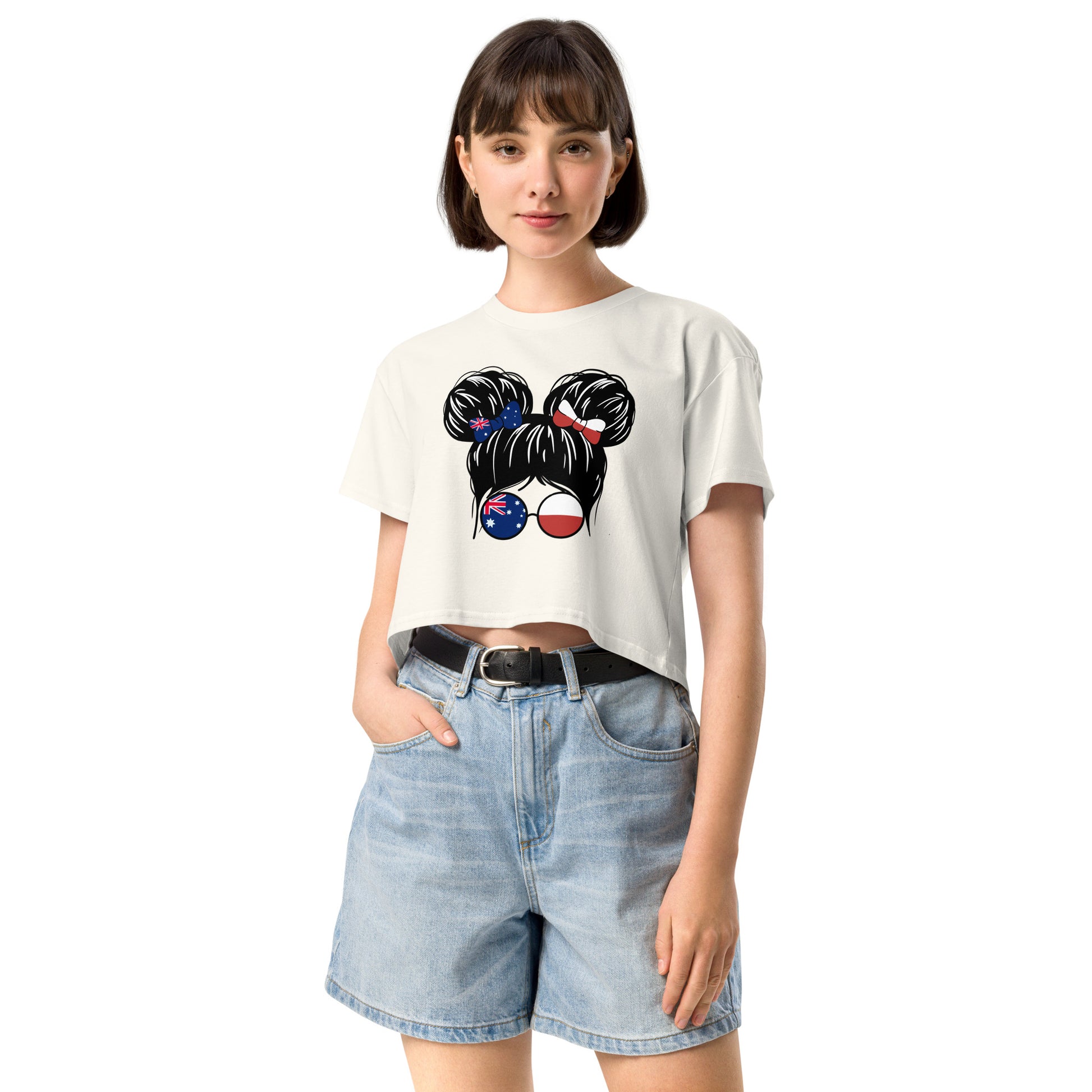 Crop top - girl with Australian and Polish flags in glasses
