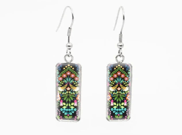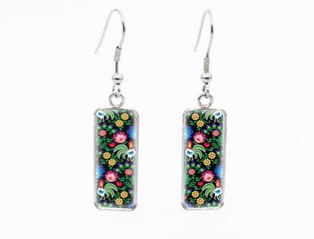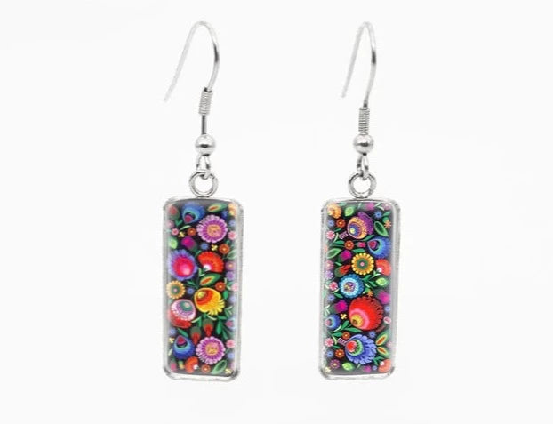 Folk Art Rectangle Drop Earrings